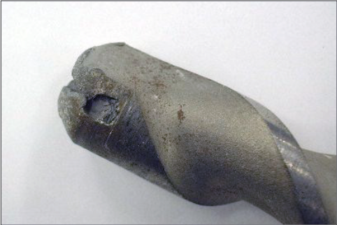 | ⑤ 電動工具の故障・不具合による影響 | 電動工具の装着部のガタツキによりブレが発生し、シャンクの早期摩耗が促進され、ドリルビットにダメージを与えている。 |