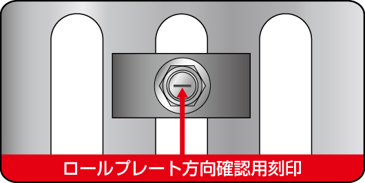 ❸ ロールプレート方向確認用刻印の向きを合わせたまま本体を引き上げ